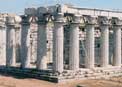 Βασική σκέψη για τον τύπο και τη μορφή των ικριωμάτων ήταν η προστασία των κιόνων του ναού που έχουν απόκλιση από την κατακόρυφο και ως εκ τούτου αστάθεια και πιθανότητα εκτροπής και κατάρρευσης ακόμη. Τα επιστύλια κινδυνεύουν επίσης, αλλά τα μέσα για την αντιμετώπιση του κινδύνου αυτού είναι πολύ πιο απλά απ’ ότι αυτά που απαιτούνται για την αντιμετώπιση κάποιας έκτακτης ανάγκης στην κιονοστοιχία. Επιπλέον η κατασκευή για την προστασία των επιστυλίων μπορεί να συνδυασθεί με την κατασκευή του ικριώματος των κιόνων. Έτσι έγινε μια προσπάθεια άκαμπτης σύνδεσης των κεφαλών των κιόνων με τους τοίχους του σηκού. Πρόκειται για στεφάνια που τοποθετούνται γύρω από κάθε κίονα και διαμορφώνεται οριζόντιο ικρίωμα με διαγώνιες συνδέσεις, ώστε να παρέχει τη δυνατόν μεγαλύτερη ακαμψία. Αυτό το οριζόντιο – διαγώνιο ικρίωμα συνδέεται πάνω στις τελευταίες σειρές δόμων του τοίχου του σηκού. Βέβαια, επειδή σε ορισμένα ψηλά σημεία του τοίχου η κατασκευή είναι πλημμελής, δηλαδή λείπουν λιθόπλινθοι από τις τελευταίες σειρές δόμων, εκεί θα αναπληρωθεί με συμπληρωματική κατασκευή. Το οριζόντιο ικρίωμα θα αποτελείται από οριζόντιες μηκίδες κατά μήκος των μακρών πλευρών των τοίχων του σηκού, που παίζουν ρόλο ακυρώσεων και εγκάρσιες τεγίδες που αναρτώνται με μπουζόνια στις θέσεις εδράσεως με τις μηκίδες. Έτσι οι κίονες συνδεόμενοι μέσω αυτής της άκαμπτης κατασκευής με τους τοίχους του σηκού (που θεωρούμε αμετακίνητους) υποχρεώνονται σε περίπτωση σεισμού να ακολουθήσουν την μετακίνηση των τοίχων και όχι μια ανεξάρτητη, δική τους κίνηση. Το διάφραγμα υποχρεώνει να γίνει μια ανακατανομή των δυνάμεων που δέχεται κάθε στοιχείο. Αν δηλαδή τα στοιχεία είναι ελεύθερα (χωρίς καμιά σύνδεση μεταξύ τους), ο τοίχος θα έφερε μια ορισμένη δύναμη διαφορετική από εκείνην του κίονα. Με την σύνδεσή τους αυτή οι δυνάμεις, συγκεντρώνονται στα πιο δύσκαμπτα στοιχεία. Εμποδίζεται η κίνηση του κίονα, δημιουργείται μια αντίδραση στο οριζόντιο ικρίωμα και η αντίδραση αυτή μεταφέρεται στον τοίχο. Τα ιδιαίτερα κατασκευαστικά και μορφολογικά στοιχεία του νέου ικριώματος είναι η στεφάνη στηρίξεως του κίονα και παραλαβής του βάρους των επιστυλίων και η απουσία κατακόρυφων υποστυλωμάτων. Αυτό μας απαλλάσσει από τυχόν προβλήματα μεταφοράς δυνάμεων στο δάπεδο του ναού (που σε πολλά σημεία του βρίσκεται σε κακή κατάσταση) εξασφαλίζει δε τη μείωση όγκου της πρόσθετης κατασκευής και κατά συνέπεια διακριτικότητα. Τα τυπικά (επαναλαμβανόμενα) κατασκευαστικά μέρη και στοιχεία του ικριώματος είναι τα εξής: